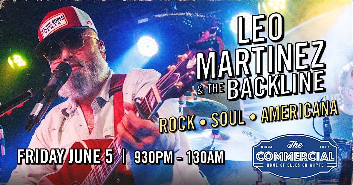 The Backline features Stew Kirkwood on Lead Guitar, Sam Toms on Tenor Sax, Paul Steffes on Bass, Chad Melchert on Drums, Manny Valencia on Congas, and Leo Martinez on Guitar/Lead Vocals.