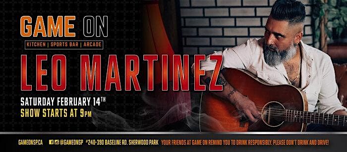 Join us Saturday February 14th for a night of music and dancing! Leo Martinez graces Game On's room for Valentine's Day! Each Ticket includes a pre paid sleeve of house lager, highball, or glass of house red/white wine!