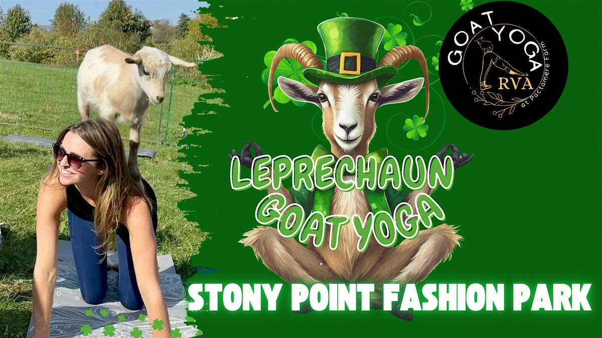 Celebrate St. Patrick’s Day with Leprechaun Goat Yoga at Stony Point on March 15! We’re hosting two 1-hour goat yoga sessions at 11:00 AM and 12:00 PM featuring our adorable goats dressed in festive St. Patrick’s Day attire.
