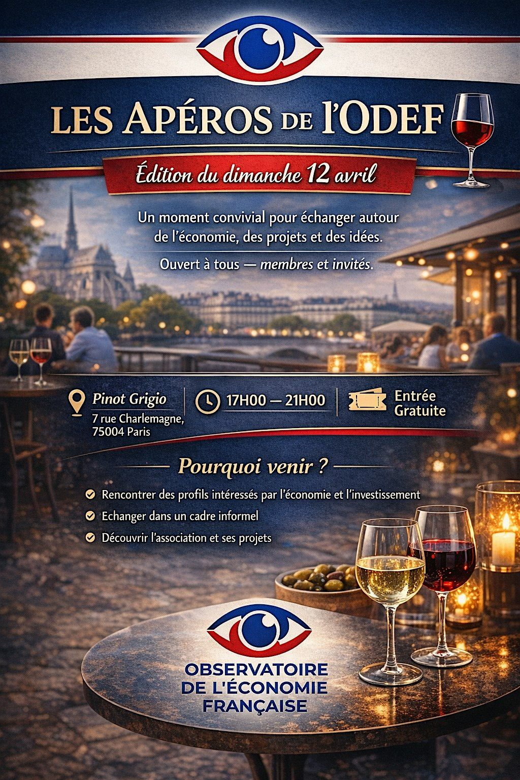 Viens te détendre et rencontrer des passionnés autour d’un verre lors de Les Apéros de l'ODEF #1 ! C’est l’occasion parfaite pour échanger, partager des idées et passer un bon moment en présentiel. Ambiance conviviale garantie, alors n’hésite pas à venir faire partie de l’aventure !