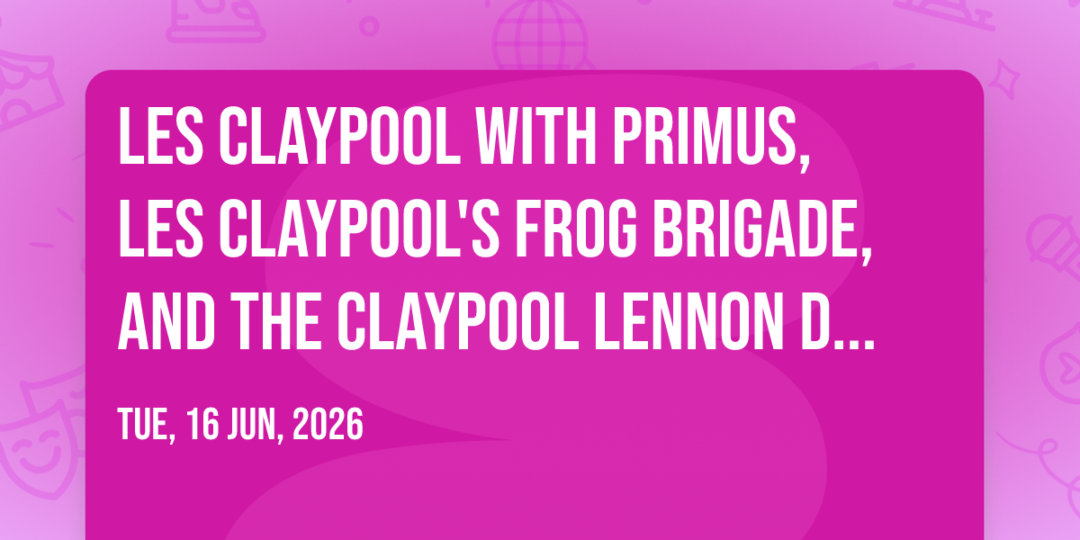 📍 Location: 35.0594, -80.8472🌟 Be part of history at Les Claypool with Primus, Les Claypool's Frog Brigade, and The Claypool Lennon Delirium, an extraordinary gathering that will captivate your imagination! 🏛️ The prestigious The Amp Ballantyne in Charlotte, NC sets the stage for an unforgettable experience on June 16th, 2026 at 10:30 PM. ✨ They are bringing together the finest elements of entertainment and innovation to create moments that will take your breath away. From the moment you arrive, you'll be immersed in an atmosphere of wonder and excitement. 🎯 This carefully planned event ensures every guest experiences something truly special. 🎊 Early booking is recommended for this must-attend event of the season!