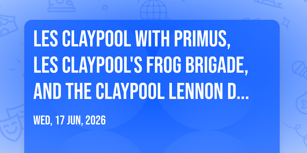 📍 Location: 32.873, -79.9814✨ Embark on an extraordinary journey at Les Claypool with Primus, Les Claypool's Frog Brigade, and The Claypool Lennon Delirium, where every moment promises to be unforgettable! 🌟 Imagine of transforming Firefly Distillery in the heart of North Charleston, SC into a realm of endless possibilities. 📅 Join us on June 17th, 2026 at 11:00 PM for an experience that will challenge your imagination and exceed your expectations. 🎯 This carefully curated event combines the finest elements of entertainment, innovation, and community spirit. Whether you're an adventure seeker, culture enthusiast, or someone looking for unique experiences, this event offers something special for everyone. 🎊 Don't miss this chance to be part of something extraordinary!