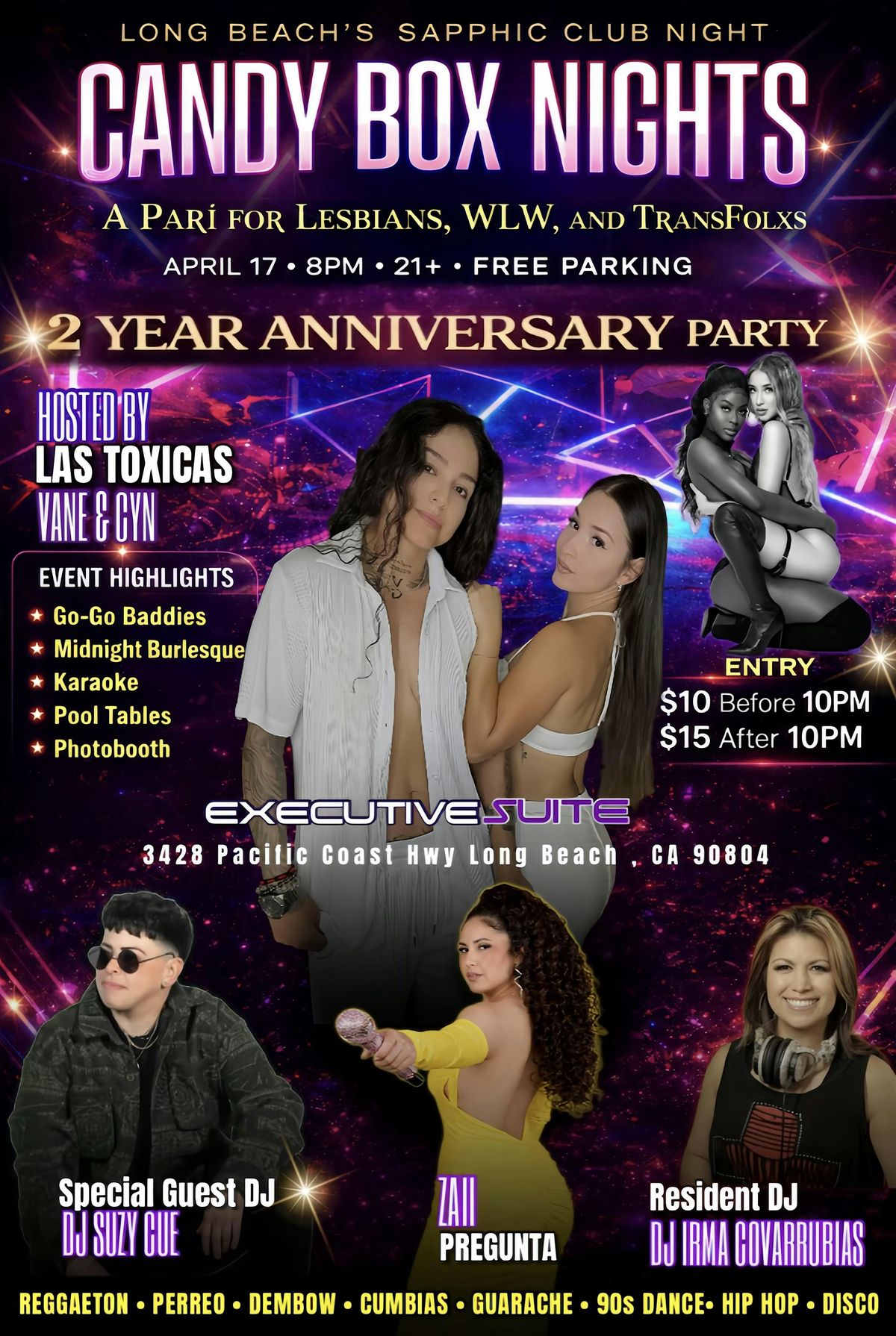 Come out and celebrate Long Beachโs only Sapphic centered club night as we mark 2 amazing years of Candy Box Nights at the Executive Suite!๐๐๐ฝ