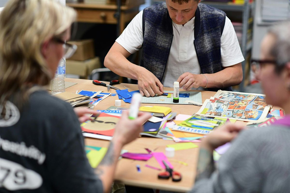 Far from being a restriction, working with a limited palette of materials can focus the mind and stimulate creativity, often leading to fresh approaches and new avenues of exploration. In this hands-on one day workshop, Les Jones will take participants through a number of creative collage exercises working with limited materials. By the end of the day you will have created 4-5 new collages and leave with new ideas and techniques to take your collage practice forward.