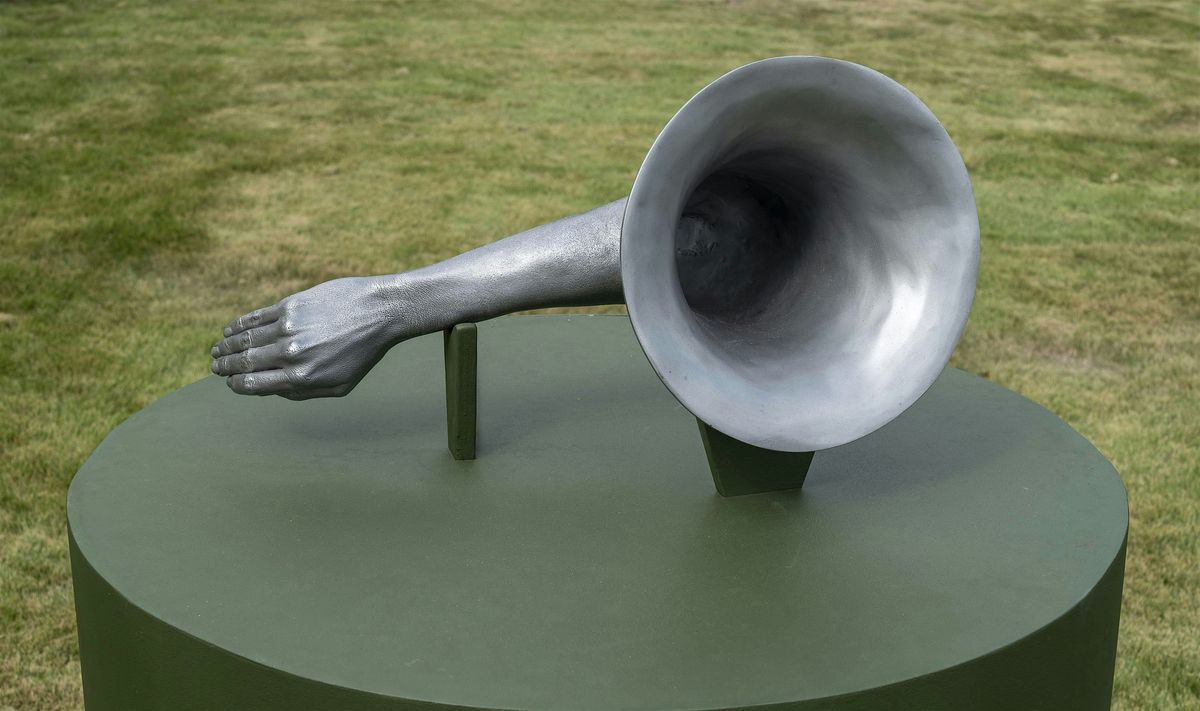 Elana Mann is an artist and activist who makes artwork about the power of the collective voice, the embodiment of language, and deafness. Mann was born Hard of Hearing and for twenty years she has researched the act of listening through sculpture, sound, works on paper, and public performances.