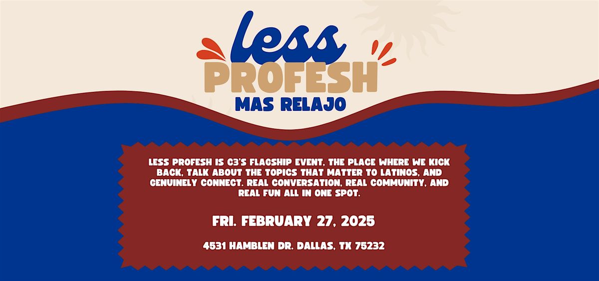 Less Profesh is C3’s flagship event, the place where we kick back, talk about the topics that matter to Latinos, and genuinely connect.