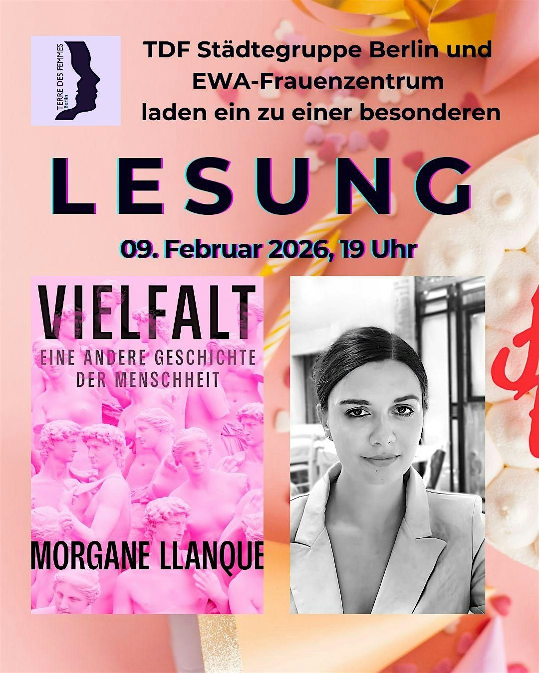 Das EWA-Frauenzentrum und die TDF Städtegruppe Berlin laden zu dieser besonderen Lesung ein! Musikjournalistin Elisabeth Hahn wird die Lesung moderieren. TERRE DES FEMMES setzt sich seit 1981 für Menschenrechte für Mädchen und Frauen ein.