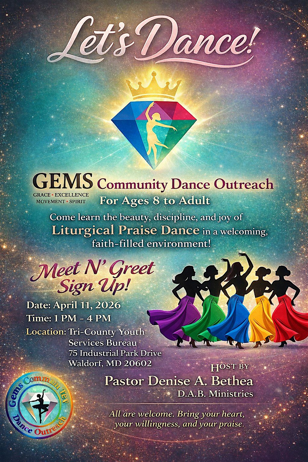 Join GEMS Community Dance Outreach for a Meet N’ Greet & FREE sign-up to explore Liturgical Praise Dance for ages 8 to adult.