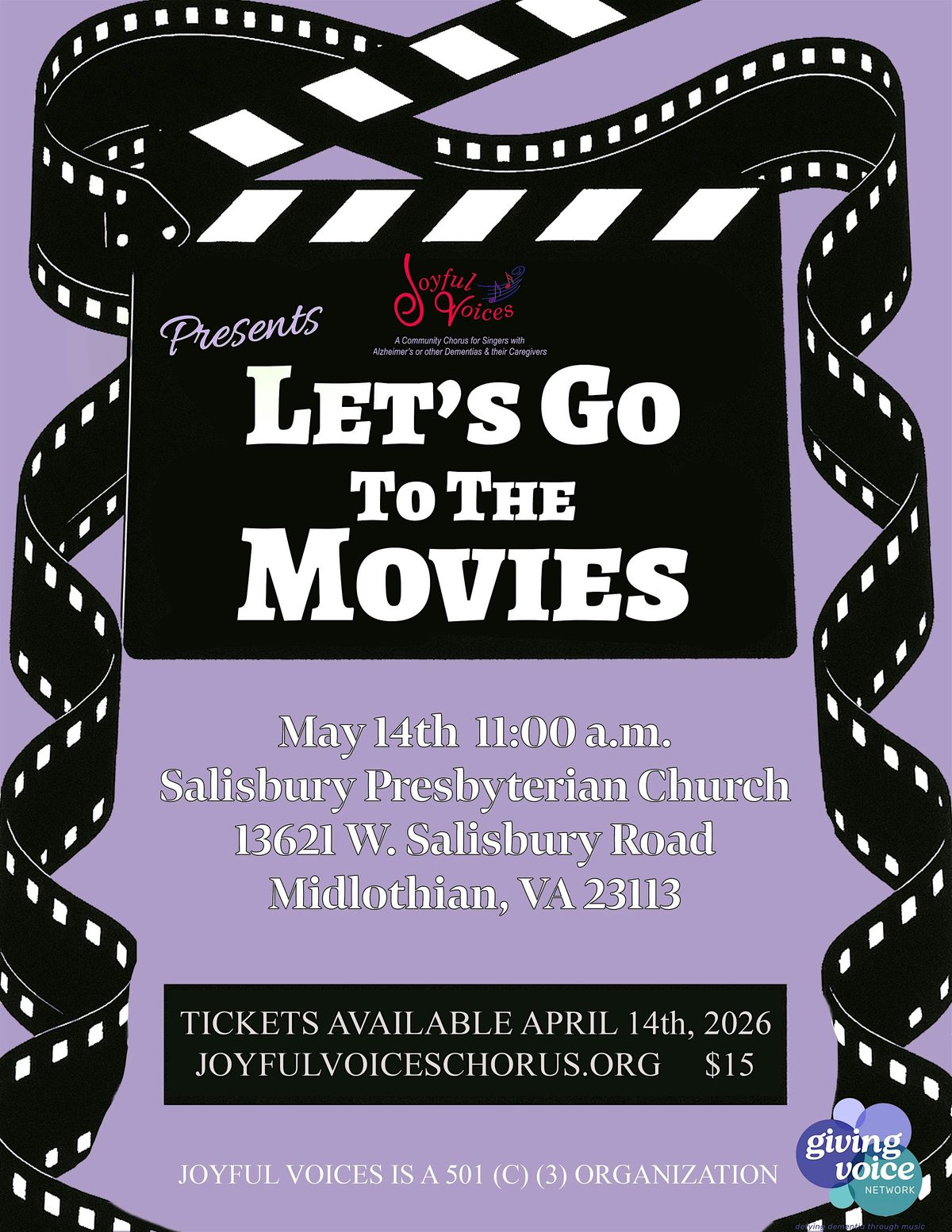 Join us for “Let’s Go To The Movies”, a concert presented by Joyful Voices Chorus—a community of singers living with Alzheimer’s and other forms of dementia.