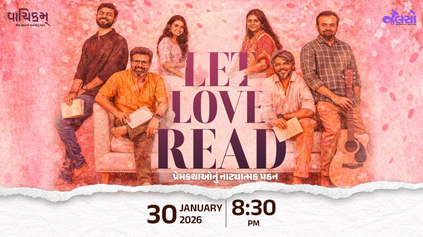 Experience the magic of storytelling at "Let Love Read - પ્રેમકથાઓનું નાટ્યાત્મક પઠન," presented by Jalso Gujarati Music App.