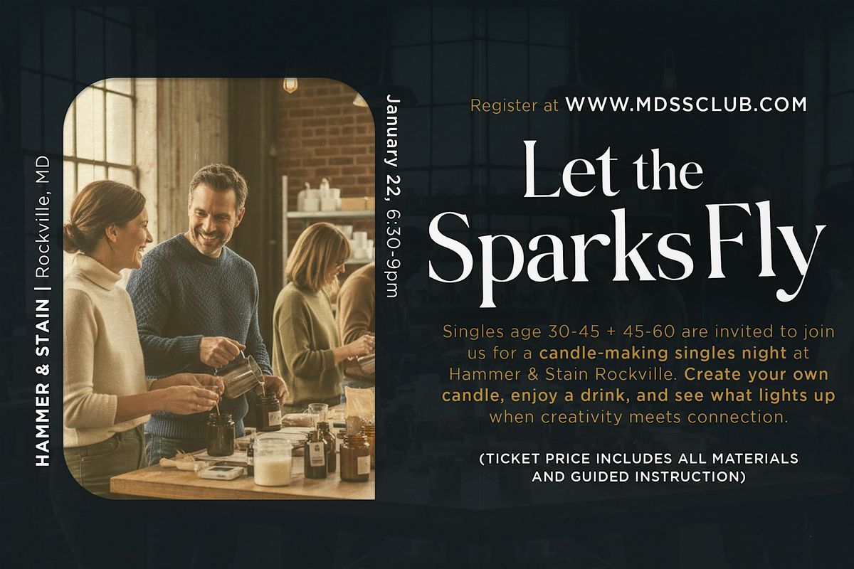 Singles 30-45 & 50-65 are invited to join us for a candle-making singles night at Hammer & Stain Rockville. The candle theme for the evening is your favorite drink! Create your own candle, enjoy a drink, and see what lights up when creativity meets connection.