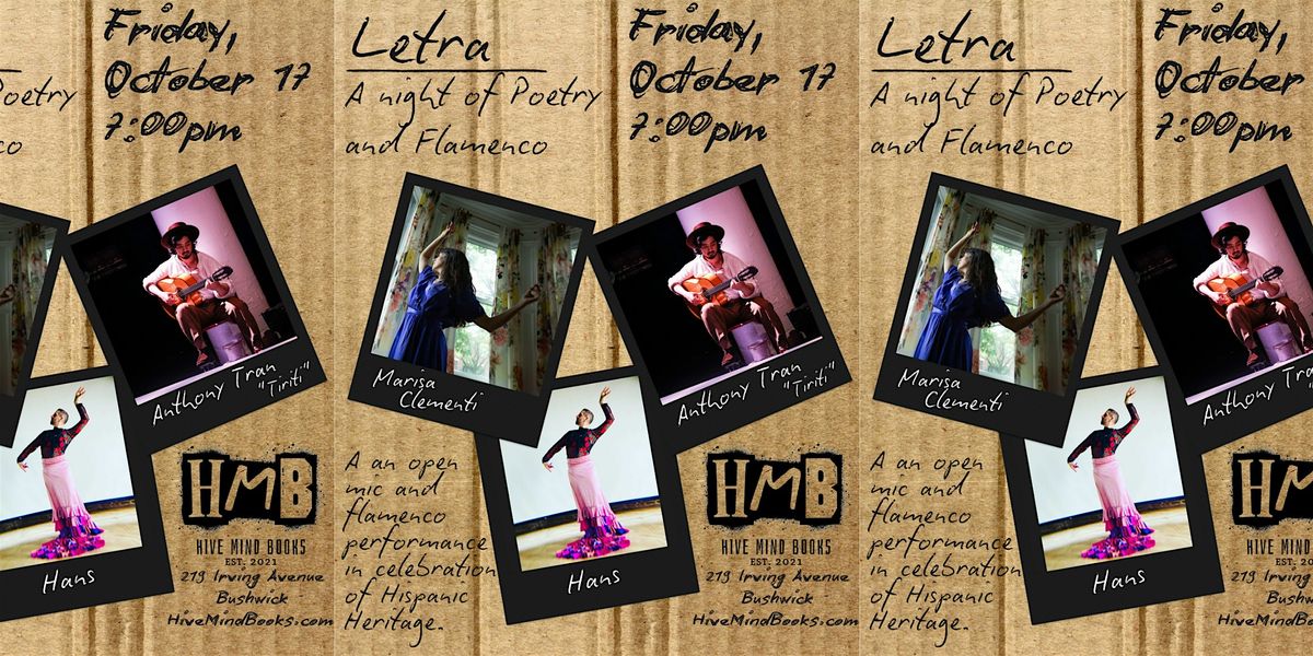 Come share in an evening of queer poetry, flowing with the rhythms of flamenco, at Hive Mind Books in Bushwick. This night of open mic and flamenco performance is in celebration of Hispanic heritage.