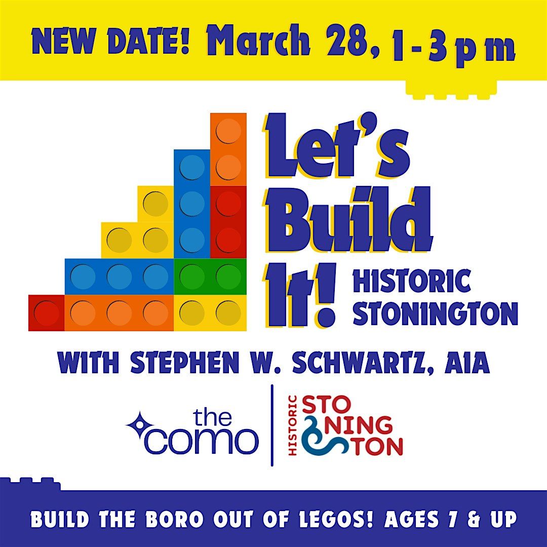 Join Historic Stonington, the COMO, and Architect Stephen W. Schwartz, AIA as we build iconic buildings on a giant map of Stonington! Family-friendly event for Ages 7+.