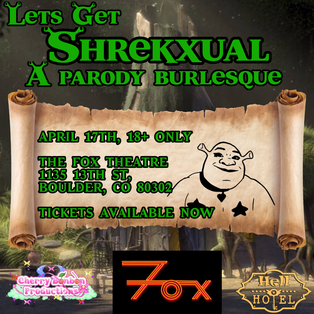 🌟 Journey into wonder at Lets Get Shrekxual - Burlesque Show at Fox Theatre Boulder, where extraordinary experiences await around every corner! 🏛️ Set against the backdrop of Fox Theatre Boulder in dynamic Boulder, CO, this event promises to exceed all expectations. 📅 Join us on April 17th, 2026 at 08:00 PM for a celebration that combines innovation, entertainment, and community spirit in perfect harmony. ✨ There will be an atmosphere where memories are made and stories come alive, ensuring every guest experiences something truly remarkable. 🎊 This is more than just an event; it's a journey into the extraordinary!