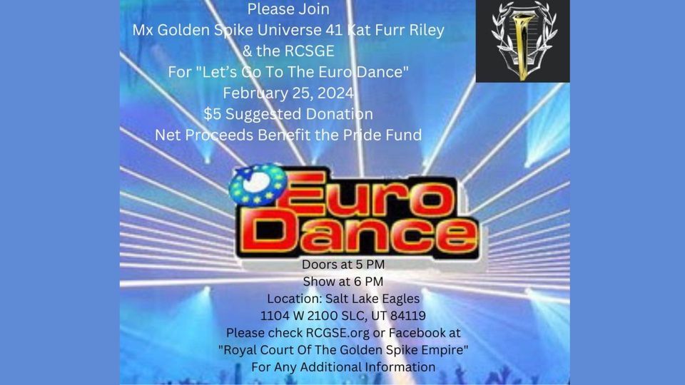 Kat Furr is honored to host their second event as the reigning Mx Golden Spike Universe 41 of the Royal Court of the Golden Spike Empire. We are going to the EuroDance! They are so excited to raise money for the RCGSE's Pride Fund! I am looking for the fun EuroDance hits. Ours are going to be fun! We would love to see everyone there!
