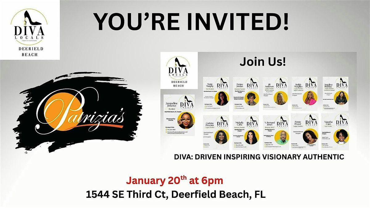 DIVA Locals Deerfield Beach, kicking off the year with its 1st MEET UP 2026 at Patrizia's Restaurant inside THE COVE and You're Invited! The Diva Locals Deerfield Beach, is part of the Global DIVA Network. A movement to create community around the world. Become an ambassador with us and help build up business and organizations in the area, while bringing VISIBILITY to our own professions.