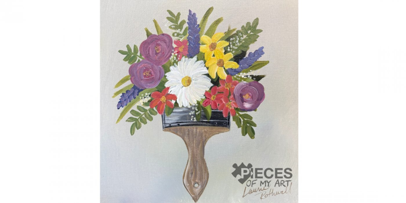 We will paint a classic wooden-style brush right onto our 12x12 canvas and watch as a bursting bouquet of blossoms grows from the bristles.