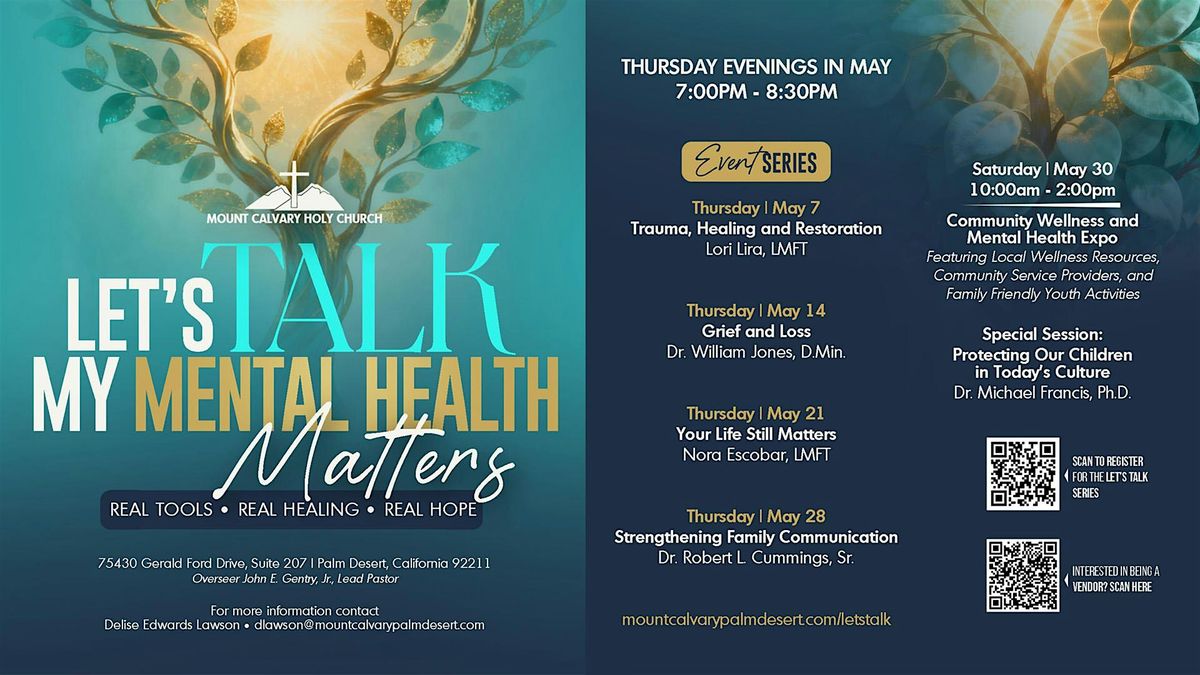Let’s Talk: My Mental Health Matters is a powerful, faith based community series designed to bring real tools, real healing, and real hope to individuals and families across the Coachella Valley.