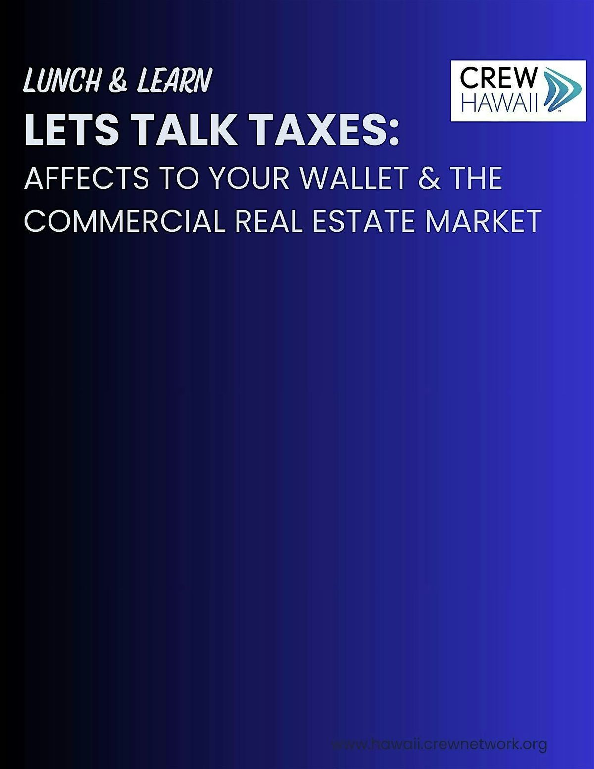 Join CREW Hawaii & West Pac Wealth Partners to discuss the upcoming tax season & its affects to the CRE Market.About this Event