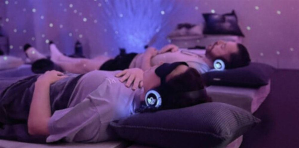 The session combines guided breathing with music, sound and spoken prompts.