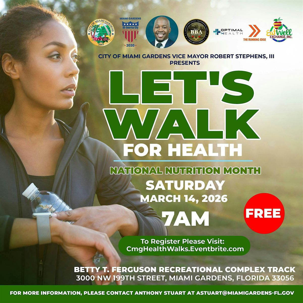 Walk: Vice Mayor Stephens does quarterly walks to increase awareness about health issues affecting our community. Participants will walk at their own pace around the Betty T. Ferguson Track.