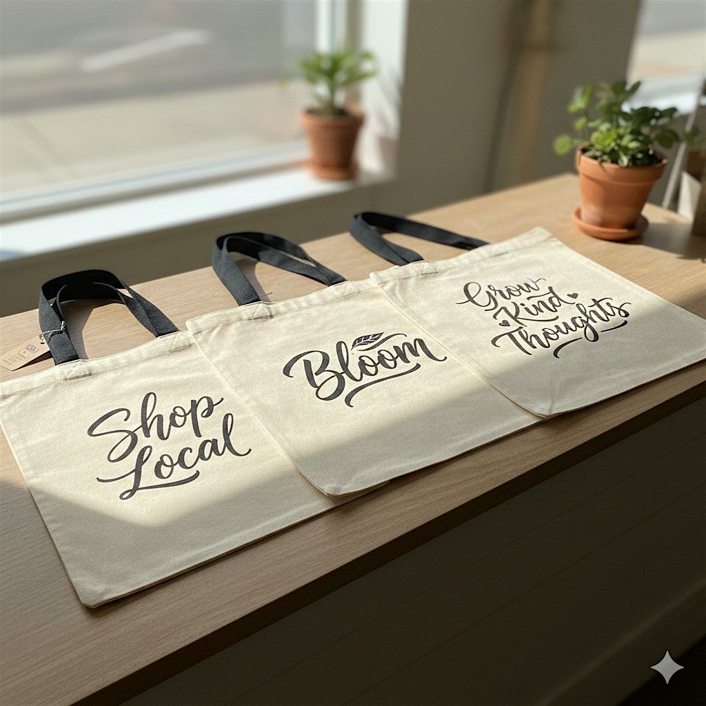 Spring Lettering at Orion's Apothecary! Learn faux calligraphy & then create beautifully hand-lettered canvas shopping bags.