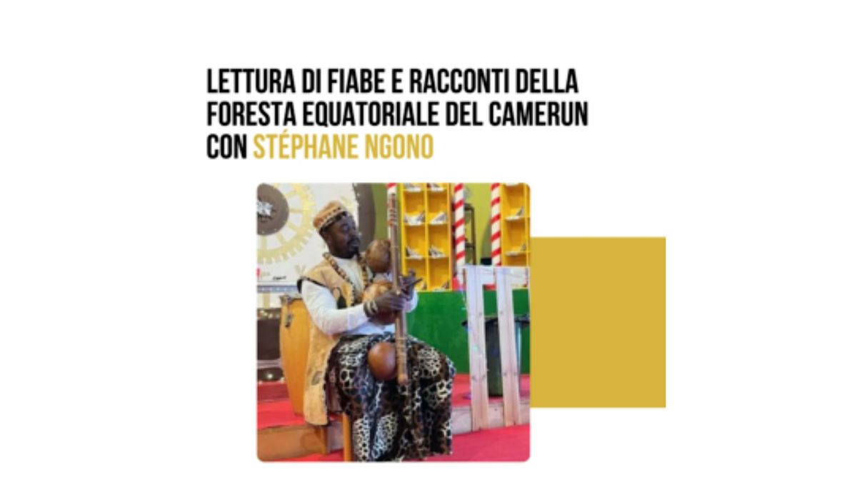 Lettura di Fiabe e Racconti della Foresta Equatoriale del Camerun a cura di Stéphane Ngono, educatore e artista di origine camerunense. Narrazione di fiabe e racconti tradizionali della foresta equatoriale del Camerun. Incontro aperto a famiglie e comunità che offre un’occasione per ascoltare e condividere storie che trasmettono saggezza e valori universali favorendo l’interazione tra generazioni.