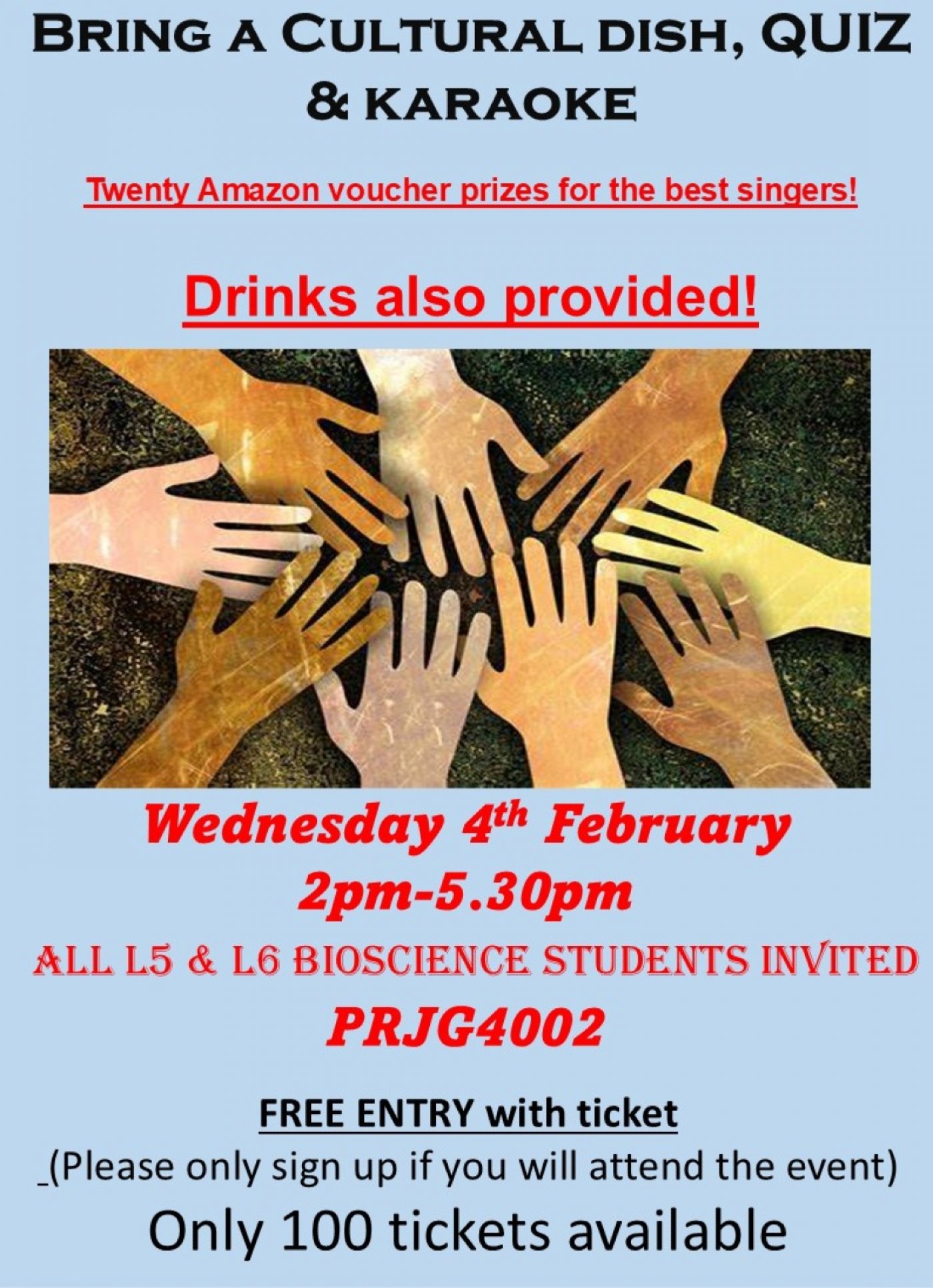 Bring a dish from your culture and come and sing your heart out in any language!