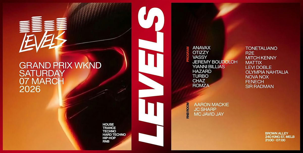 Recognised as a pinnacle event on the Formula 1 circuit, Levels is thrilled to announce our highly anticipated Aus Grand Prix pre-party this Saturday! With enthusiasts converging from every corner of the world and Levels being your home, we're gearing up for our biggest event of March. Levels β a first place finish every Saturday ποΈ