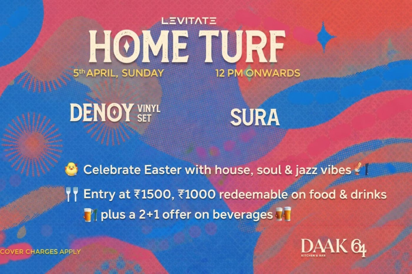 Celebrate Easter at Daak 64 with a vibrant brunch in collaboration with Home Turf ✨ Enjoy house, soul & jazz vibes 🎶 with vinyl sets by Denoy and Sura, paired with a special à la carte Easter menu 🍽️