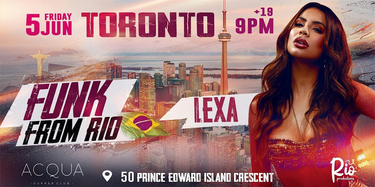 No dia 5 de junho, Lexa chega pela primeira vez em Toronto com um show inédito, dentro da festa Funk From Rio, uma noite dedicada ao funk e às brasilidades, com DJ de abertura, show ao vivo e DJ de encerramento, garantindo energia total até o fim.