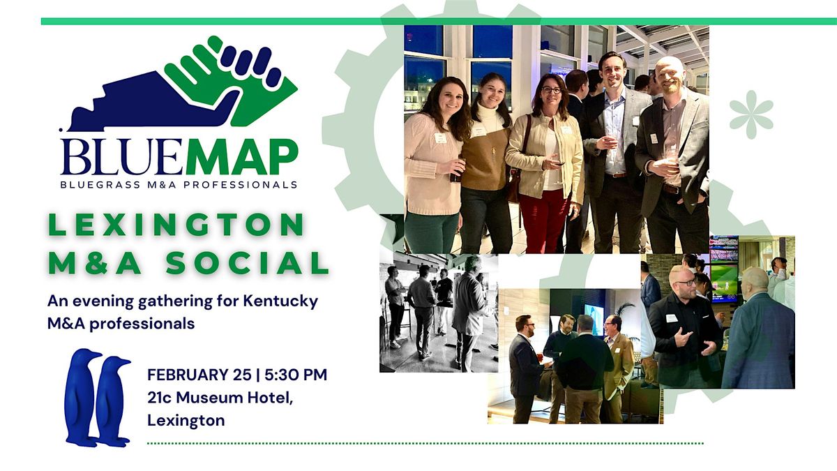 Connect with M&A colleagues, advisors and execs at BLUEMAP's networking social event Feb. 25 in the Main Gallery at 21c Museum Hotel in downtown Lexington. A cash bar is available and appetizers are on us.