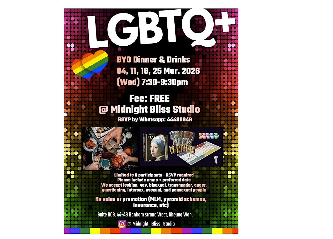 Join us in Sheung Wan for a warm, free BYO dinner where LGBTQ+ friends and allies come together to share food, drinks, and honest conversation. Bring your own food box and drinks to share with others.