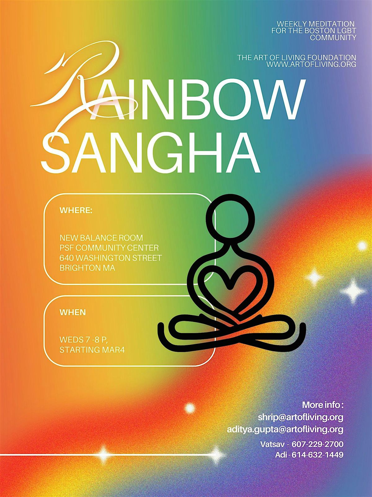Rainbow Sangha is a weekly meditation circle created for the Boston LGBTQ+ community. This is a welcoming, beginner-friendly space to slow down, breathe, and reconnect — with yourself and with others.