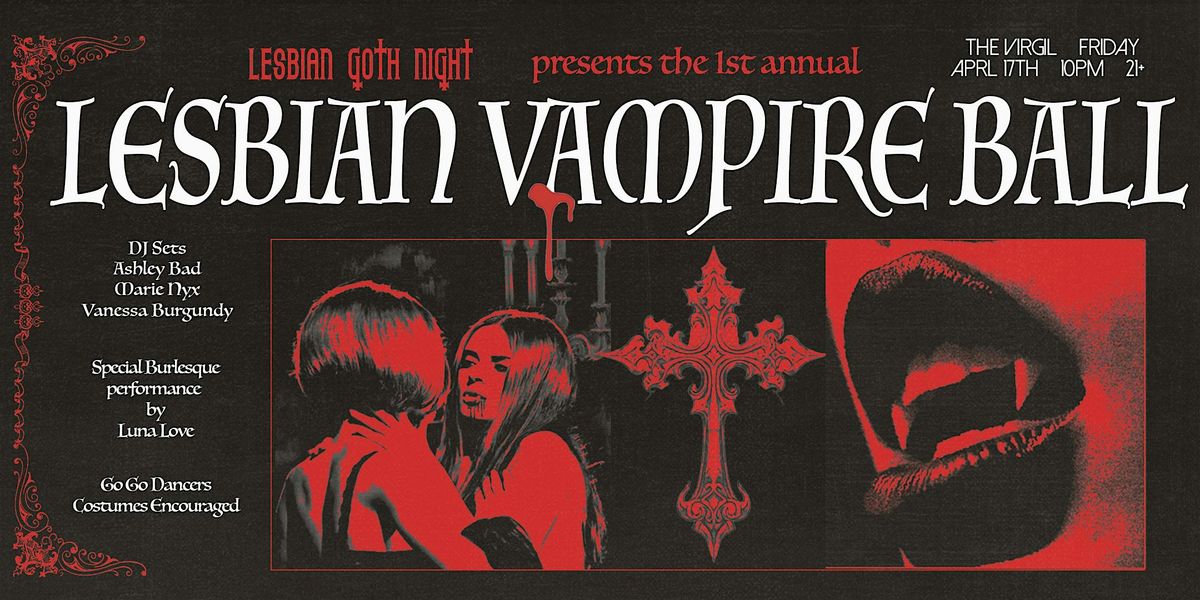 You are cordially invited to attend LGN’s First Annual Lesbian Vampire Ball on Friday April 17th, at the Virgil, Doors 10PM, 21+