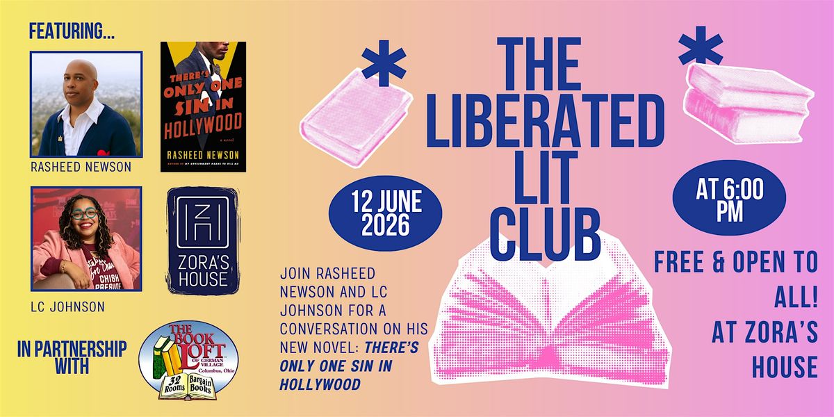 Join us for a special edition of Liberated Lit Book Club featuring acclaimed author, Rasheed Newson, in conversation about his novel There’s Only One Sin in Hollywood. Set in 1950s Hollywood, the book follows a backlot fixer navigating the hidden lives of Black actors in an industry shaped by secrecy, power, and performance.