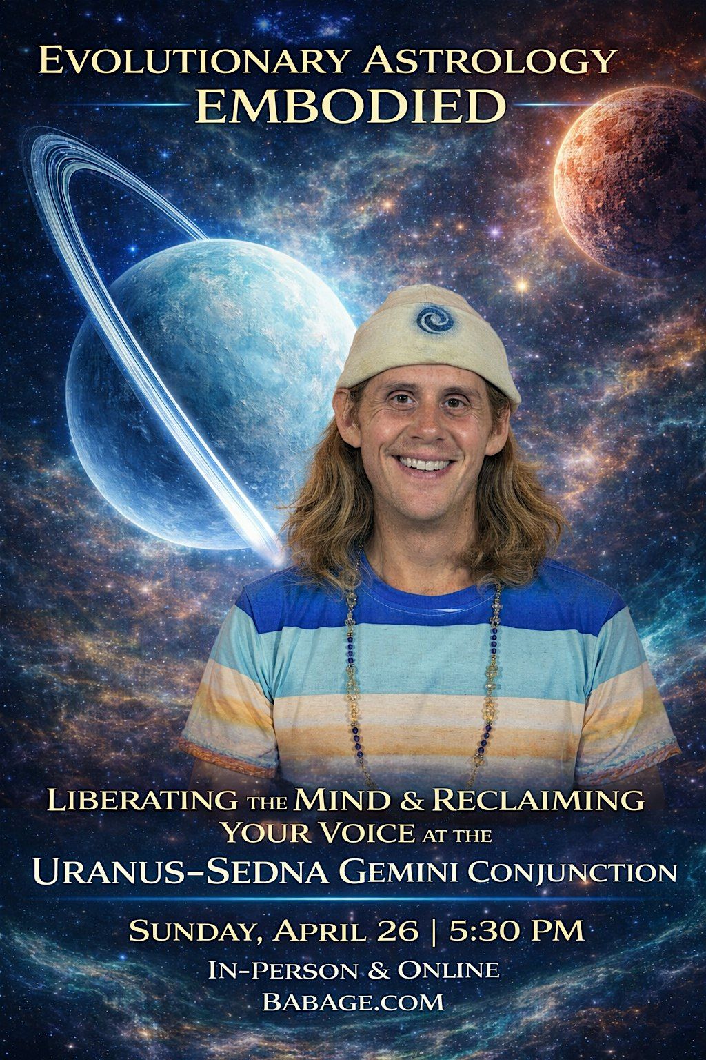 This workshop focuses on the rare conjunction of the planet Uranus and the planetoid Sedna as Uranus enters Gemini, marking a pivotal shift in how the mind processes truth, perception, and expression. It explores the deeper evolutionary meaning of Uranus in Gemini through the lens of Evolutionary Astrology, alongside the myth of Sednaand how Sedna operates in the chart as a force of lost and reclaimed voice, exile, and empowerment.