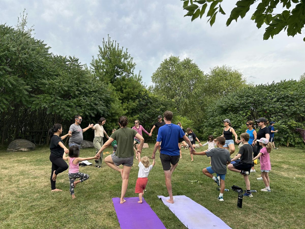 - Atelier de yoga en famille en français (âge recommandé : 3 à 8 ans) : dimanche le 16 août de 10 h 45 à 11 h 45