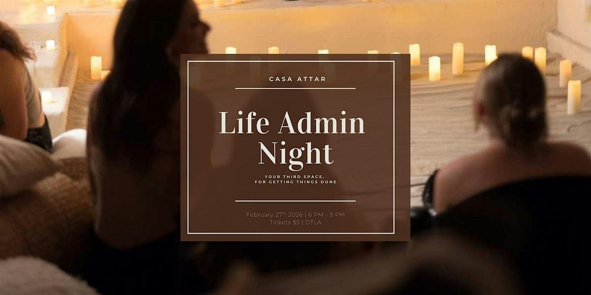 Casa Attar invites you to Life Admin Night, an open work evening designed for catching up on the things that tend to get pushed aside. Join us on February 13th from 6pm-9pm for a few hours set aside to sit down, focus, and make progress.