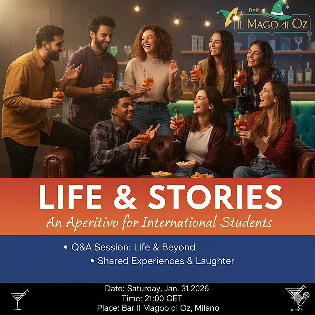 An aperitivo for students with a Q&A session about life, stepping out of your comfort zone, shared struggles, laughter, and stories.
