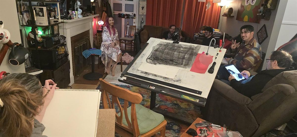 Come join us for a magical evening of life drawing at Nightmeat's Unaccredited Wizard University! Unleash your creativity and hone your artistic skills in the enchanting surroundings of our mystical campus. Which is a small house.