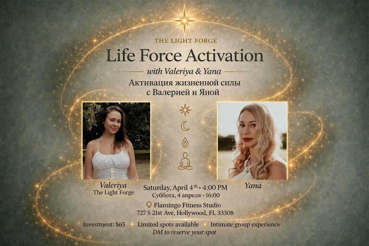 Join us in person for an energizing session where you'll unlock your inner Life Force! Valeriya &yYana will guide you through powerful techniques to boost your vitality and reconnect with your true self. Don’t miss out on this unique experience to recharge and revitalize your mind and body in a relaxed, friendly atmosphere. Come as you are and get ready for an unforgettable activation!
