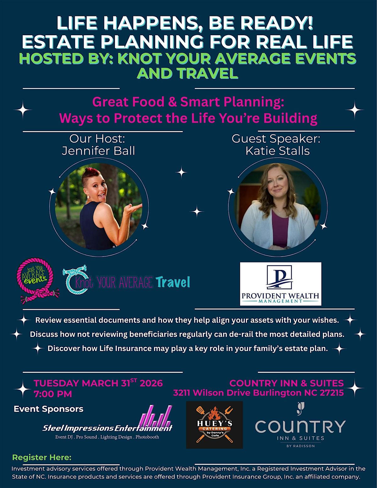 Estate Planning 101, March 31, 7pm. Protect your family, children, parents, and business. Perfect for couples, parents, and owners. Food inc