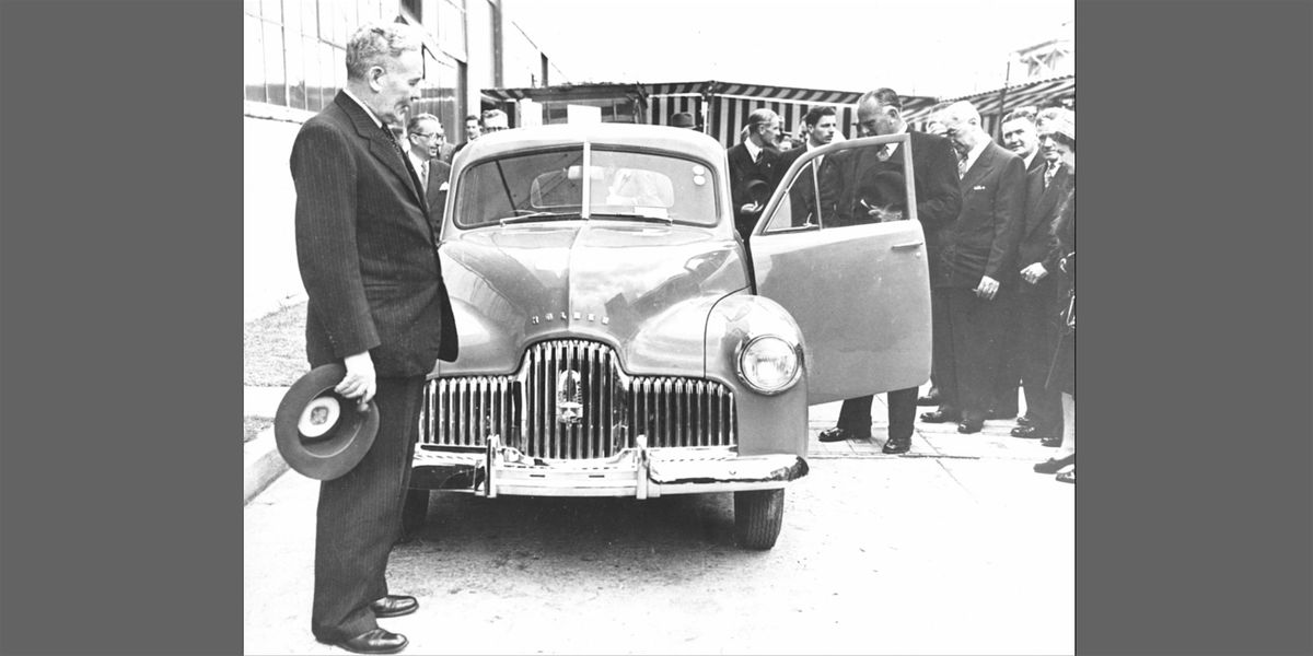 PHOTO: Prime Minister Ben Chifley with one of the announcement Holdens, © GM Australia and New Zealand.