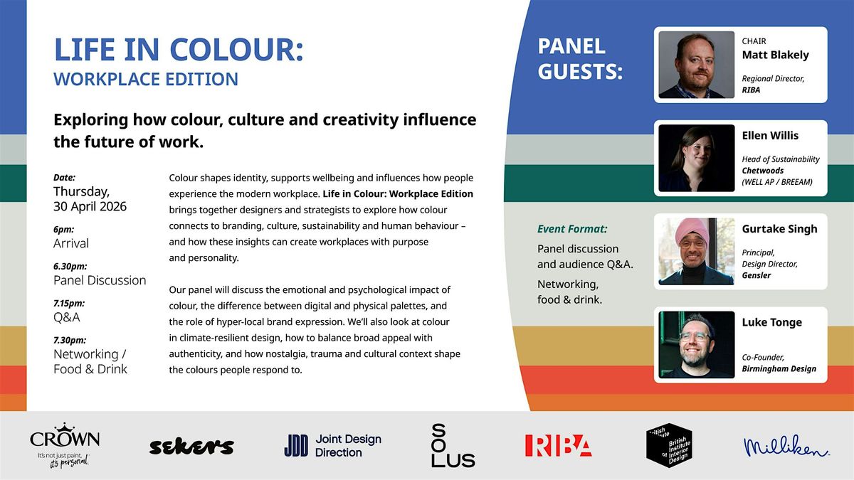 From the emotional and psychological impact of colour, to hyper‑local brand expression, to how digital and physical colour differ, our panel will open up an honest, multi‑disciplinary conversation about designing spaces that truly work for people.