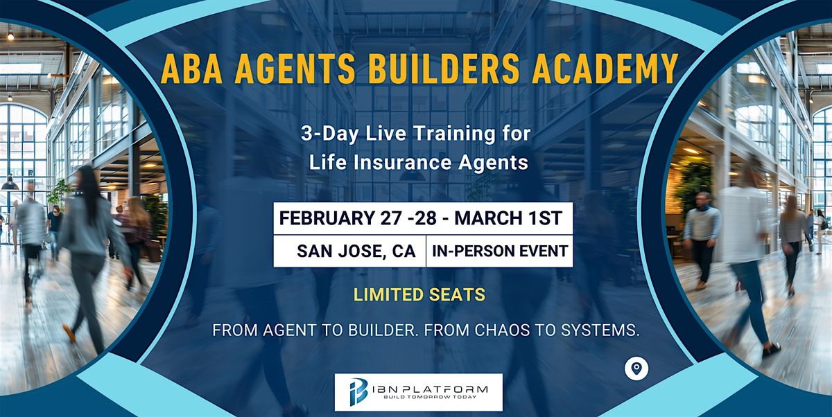 The ABA Agents Builders Academy is a 3-day, live, in-person training for life insurance agents ready to move beyond personal production and into true agency building.
