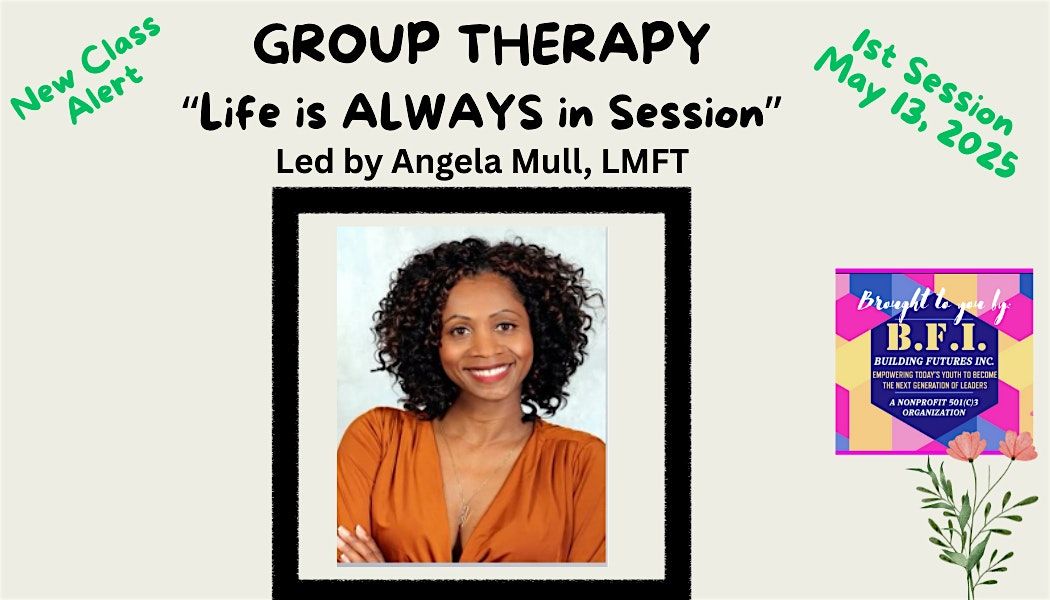 Life doesn’t pause, and neither do its challenges. Life is ALWAYS in Session is a guided group therapy discussion , designed to provide a safe, supportive space where participants can openly share their experiences, gain insight, and develop healthy coping strategies. Led by Angela Mull, LMFT a licensed therapist, each session explores real-life topics such as stress management, emotional resilience, relationships, personal growth, and mental wellness.