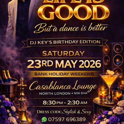 Life Is Good… but a dance is better DJ Key’s Birthday | 23rd May | 8:30–2:30 | Stylish & Sexy | Shisha & Dance VibesAbout this Event
