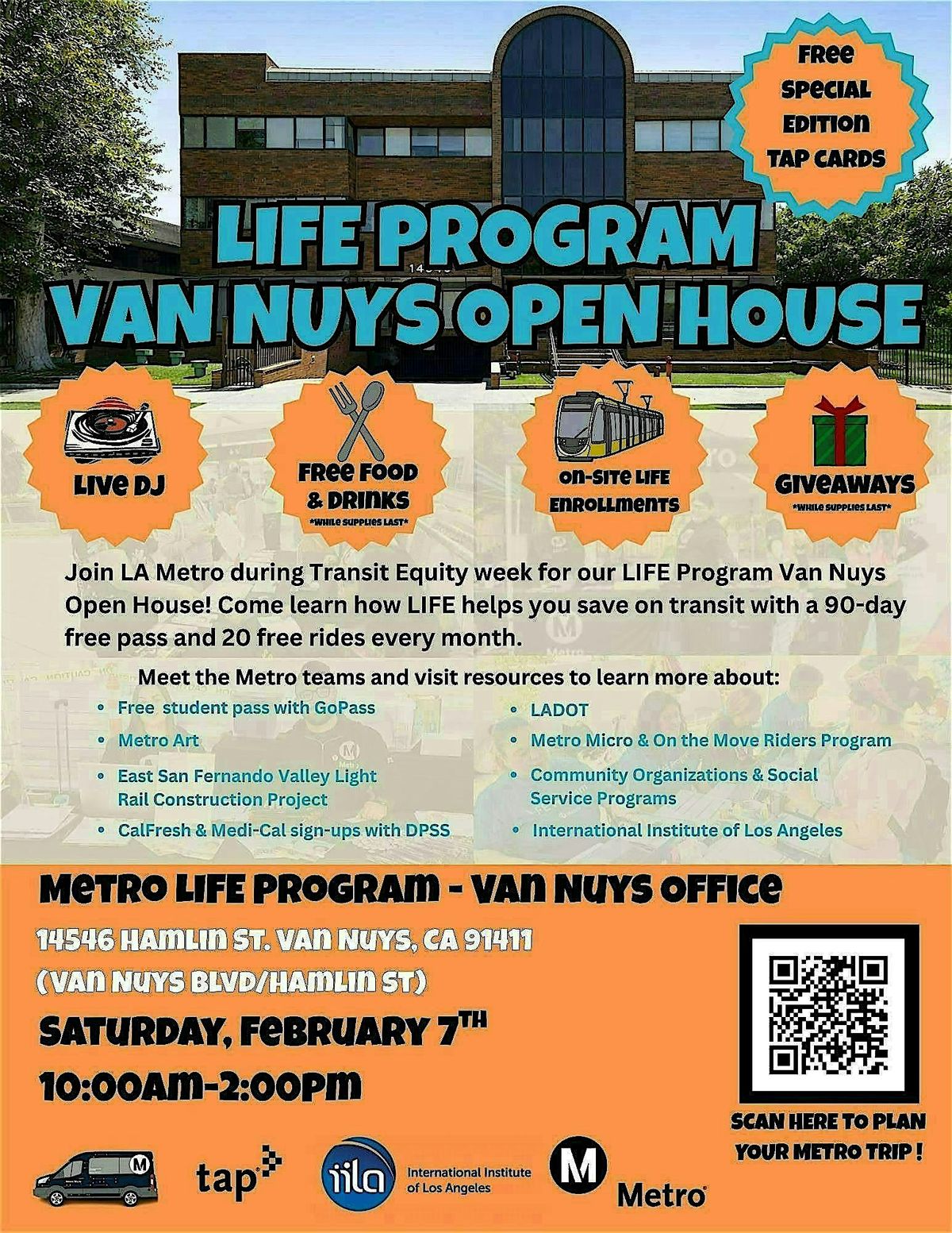 Celebrate the opening of our new Van Nuys LIFE Program office and learn how the LIFE Program can help you save on transportation across LA County. Eligible riders get a 90-day free transit pass, followed by 20 free rides every month!