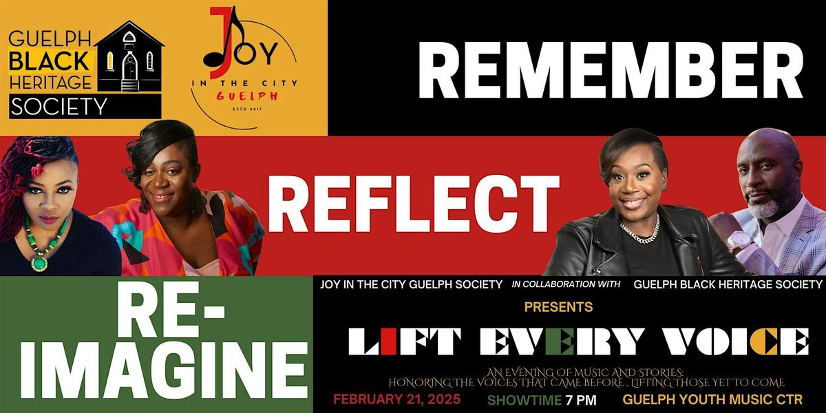 Get ready to experience something truly special at Lift Every Voice - Black Heritage Celebration. This is an in-person event where we come together to celebrate, connect, and uplift each other. Grounded in the theme of remembering the past, reflecting on the present, and reimagining the future, the night creates space to honour the voices and journeys that have shaped us. The evening features JUNO Award–winning artist Carlos Morgan, alongside recording artists Verese Vassell-Bowen, Nicole Sinclair, and Michelle Adams, who will share music drawn from their lived experiences, legacies, and hopes. Presented in collaboration with Joy In the City Guelph Society and the Guelph Black Heritage Society, this gathering celebrates community, resilience, and the power of coming together, lifting every voice, and making room for those yet to be heard. Doors open at 6:30 p.m., and the event begins at 7:00 p.m.